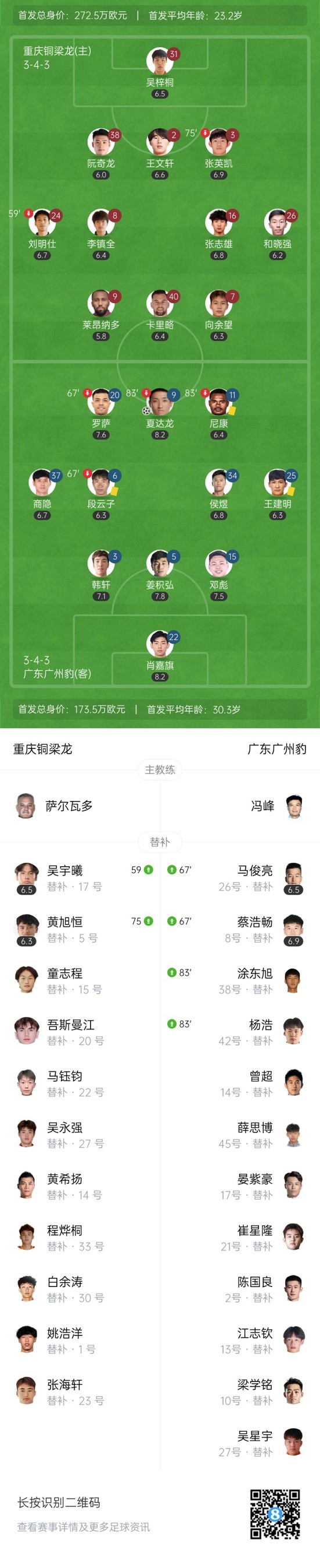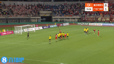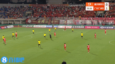 下半场补时6分钟,重庆铜梁龙0-1广东广州豹。