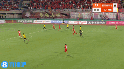 上半场补时3分钟,重庆铜梁龙0-1广东广州豹。