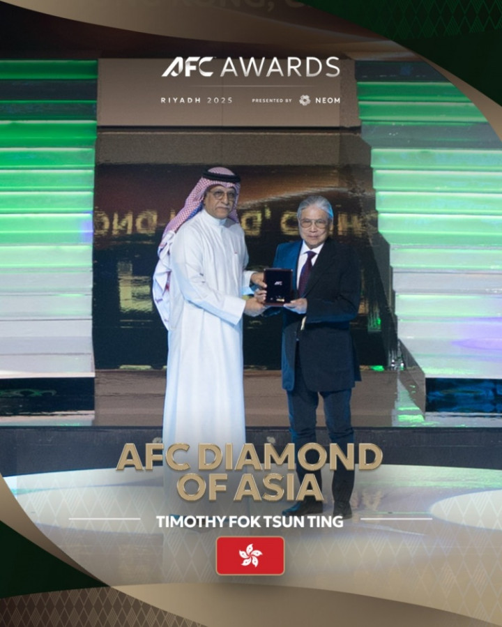 官方: 2025年亚足联颁奖典礼, 中国香港的霍震霆获亚洲之钻奖