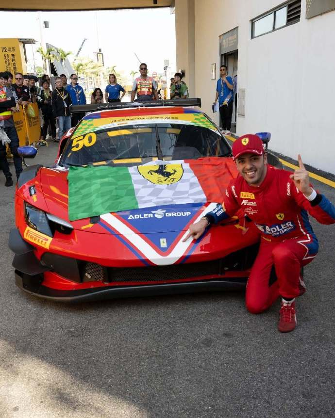 由Antonio Fuoco驾驶的AF Corse 车队法拉利296 GT3,一举斩获澳门国际汽联 GT 世界杯(FIA GT World Cup)冠军,该奖项是国际汽联为GT赛事车手与制造商设立的至高荣誉。在整个周末中,法拉利官方车手Fuoco展现出绝对实力:他在“超级杆位赛”(Super Pole)中夺得杆位,随后在选拔赛获胜,最终夺得正赛冠军,并刷新全场最快圈速。此次夺冠对法拉利意义非凡。东望洋赛道的技术难度高,对车手要求极为严苛,而Fuoco的出色表现帮助跃马实现了首次在这条赛道和这项赛事中获胜。同场作战的法拉利官方车手叶一飞最终名列第四。他原以第五名完赛,但因对手Eriksson赛后受罚,名次提升至第四。