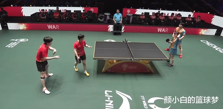 王楚钦/孙颖莎3-0A-勒布伦/袁嘉楠【11-7,12-10,11-5】;