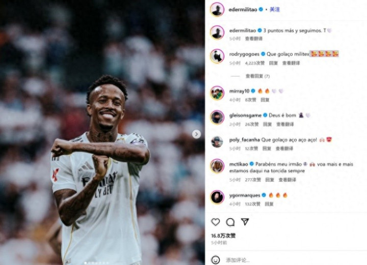 同胞罗德里戈也现身评论区:“多么甜蜜 🥰🥰🥰🥰”。