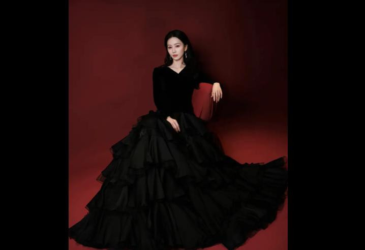 刘诗诗穿黑色V领礼裙, 气宇不凡, 女王范十足!