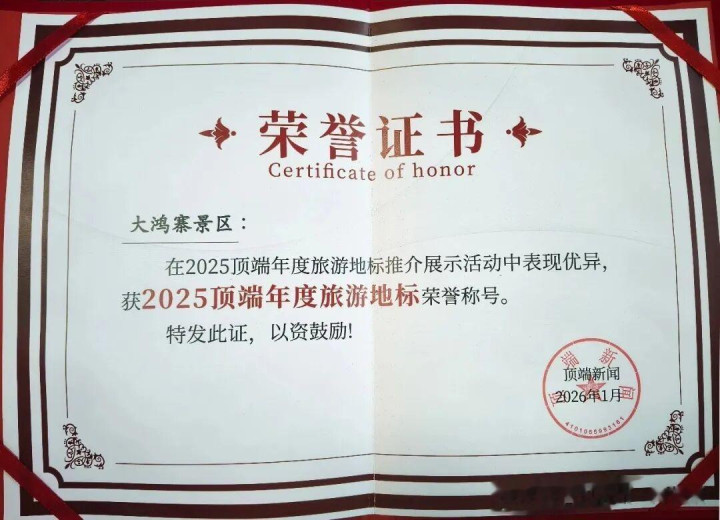 荣获“2025顶端年度旅游地标”称号