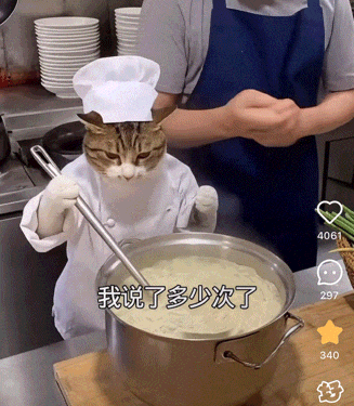 我现在每次和我奶视频,她都要问“为什么我养的小猫不会做饭”;